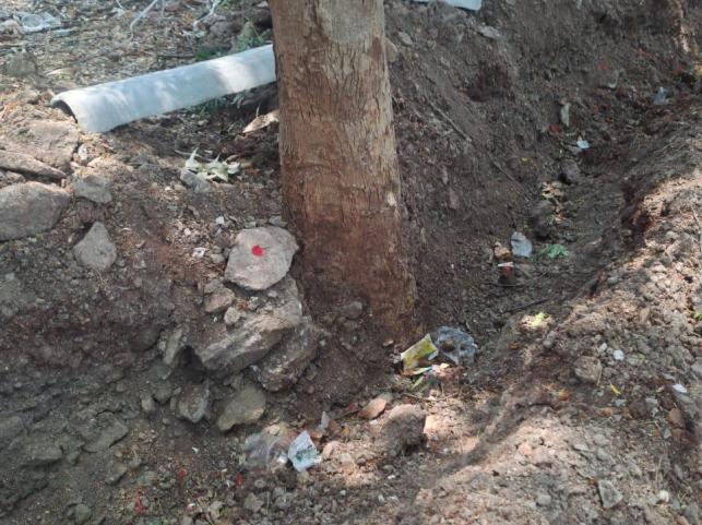 Some trees were damaged while the trunks of other trees were harmed, it was found during inspection. Gera Imperial Gateway, a site of Gera Development Private Limited, is under construction at Nashik Phata. Since additional power supply is needed for this site, the parties in question dug land to lay a 22 KV power line from the substation at Bhosari.