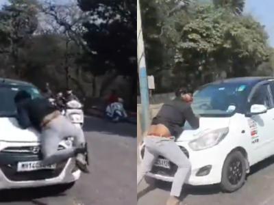 A shocking visuals has surfaced in which woman is seen driving man on the bonnet of her car after he tried to stop her fleeing after a minor accident on January 17. This incident occurred on Sangamwadi-Shahdawal Dargah road in Pune. Following this cabby, , Ram Rathod (34), sustained injuries in his hand. However, he did not report the incident to the police; it only came to light after a video of the same went viral on the internet.