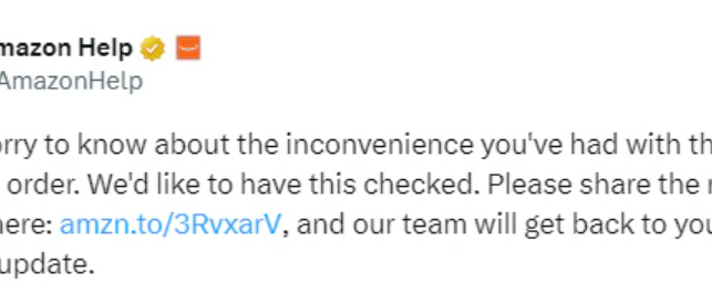 In response, Amazon issued an apology via Twitter, expressing regret over the inconvenience caused by the order. They tweeted, "We're sorry to know about the inconvenience you've had with the Amazon order. We'd like to have this checked. Please share the required details here, and our team will get back to you soon with an update."