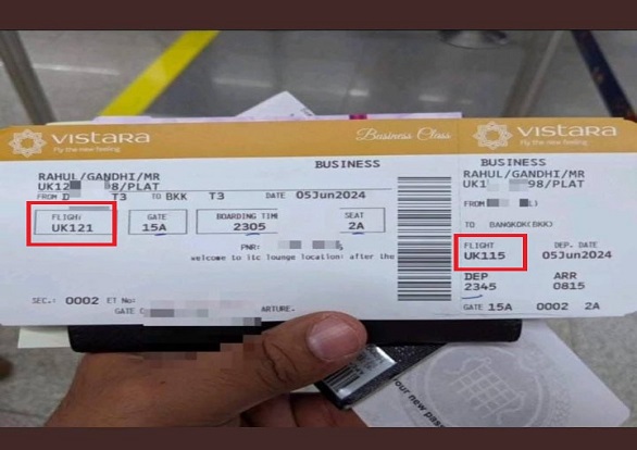 A picture of a purported boarding pass of a Vistara flight on June 5, allegedly booked for Bangkok in the name of Congress MP Rahul Gandhi, has gone viral on social media. The screenshot of the alleged boarding pass was shared on the day various exit poll surveys predicted a massive victory for the BJP-led NDA in the 2024 Lok Sabha elections. This article aims to fact-check the validity of this claim.