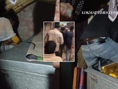 A lover was caught by his girlfriend's family members after he was found hidden in an iron trunk at her home, when the family suddenly returned home. The incident occurred in Uttar Pradesh's Kanpur district, and a video of the same is now going viral.