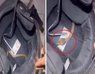 Viral Video: King Cobra Found Hiding Inside Helmet, Allegedly Bites Rider on the Head | WATCH