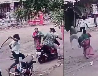 Maharashtra: Mother Chases Assailants with Stone After They Attack Her Son with Sword in Kolhapur; Chilling Video Surfaces