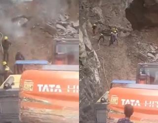 Uttarakhand: Narrow Escape for Workers Clearing Badrinath Highway as Boulders Fall in Chamoli, Video Goes Viral