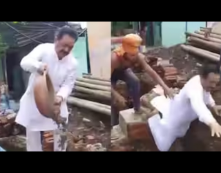 Viral Video: Doctor Falls Into Pit During Temple Volunteering Photoshoot in Madhya Pradesh