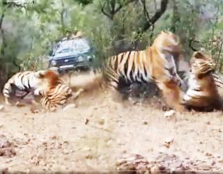 Tiger Fight Video: Tourist Captures Veera and Bhela's Fierce Battle in Maharashtra's Tadoba-Andhari Tiger Reserve