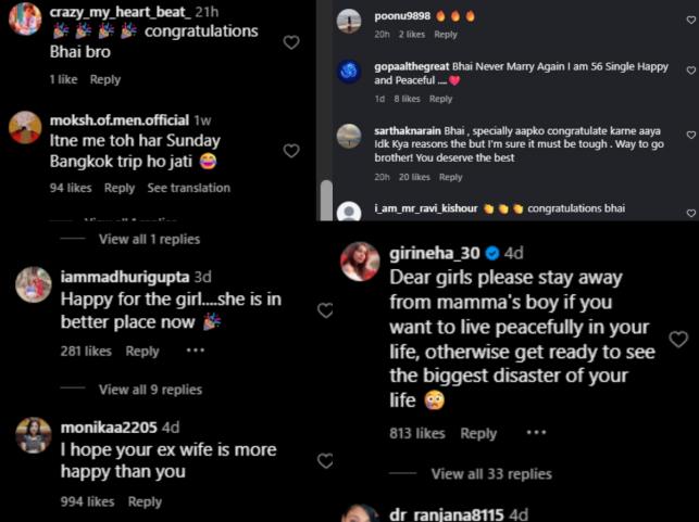 People on social media are commenting on this man's unique way of celebration. Some people like it, while many criticised him. One user commented that, "Congratulations." Another user wrote, "Please don't get married again... Your mother is enough to take care of you... Enjoy." While user criticising video wrote, "I hope your ex-wife is happier than you." another user commented, "Dear girls, if you want to live peacefully in your life then please stay away from Mamma's boy, otherwise get ready to see the biggest disaster of your life."