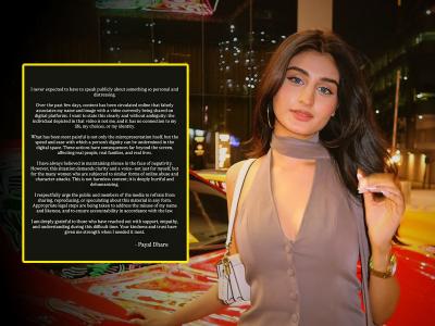 Paya termed the viral video dehumanising and hurtful for her. "I respectfully urge the public and members of the media to refrain from sharing, reproducing, or speculating about this material in any form. Appropriate legal steps are being taken to address the misuse of my name and likeness, and to ensure accountability in accordance with the law," she warned people for sharing such content will fall into legal action.