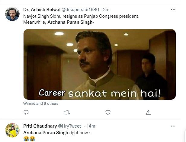 After Navjyot Singh Sidhu's resignation, Sidhu's trend has started on Twitter. Soon after, netizens have also started trending actress and Kapil Sharma show's judge Archana Puran Singh, who is holding Navjyot Singh Sidhu's chair in the show. Many have said that Archana's chair is now in danger due to Sidhu's resignation. Interestingly, many memes in this regard are also going viral. In the comedy show Archana replaced Sidhu. However, due to Sidhu's resignation, the issue of the chair is under discussion again