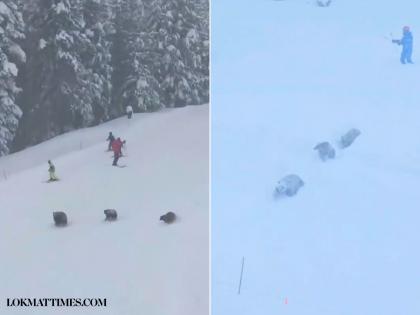 According to eyewitnesses, wild bears crawled out of nowhere from the snow and bushes and started running in front of skiers. The incident was recorded on the mobile camera by Barclay Weyhrauch, according to a KTLA news report.