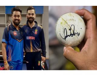 Gujarat bowler Vishal Jayswal gets signed match ball from Virat Kohli after Vijay Hazare Trophy clash