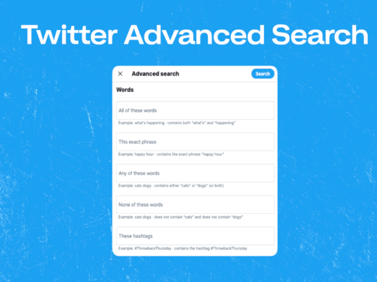 - Advanced Search https://twitter.com/search-advanced can help you filter for fields like a specific hashtag, time period, or Tweets from a particular account.
