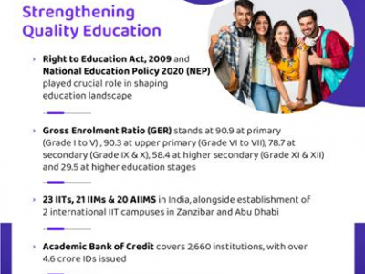 “Achievements in the education space have been marked by enhanced literacy rates, increasing enrolment in schools and higher education institutions, provision of vocational education avenues, etc. The Right to Education Act 2009 and the National Education Policy 2020 (NEP) have played a crucial role in shaping the education landscape by expanding access to quality education universally, promoting equity, and driving innovation in teaching and learning,” the Survey said.