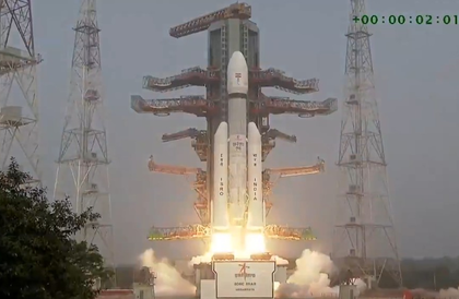 The 43.5-meter-tall rocket, which is supported by two S200 solid boosters, lifted off at 8:55 a.m. following a 24-hour countdown from the second launch pad located approximately 135 km east of Chennai.