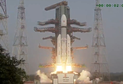The 43.5-meter-tall rocket, which is supported by two S200 solid boosters, lifted off at 8:55 a.m. following a 24-hour countdown from the second launch pad located approximately 135 km east of Chennai.