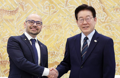 Seoul, April 27 President Lee Jae Myung on Monday met with Demis Hassabis, co-founder and CEO of Google DeepMind, to discuss cooperation on the responsible use of artificial intelligence (AI) and global partnerships.