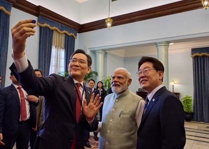 New Delhi, April 20 Lee Jae-yong, Executive Chairman of Samsung Electronics, on Monday took a selfie with Prime Minister Narendra Modi and South Korean President Lee Jae Myung, during a state luncheon at the company’s Noida facility.