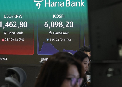 Opening 1.26 percent lower, the benchmark Korea Composite Stock Price Index (KOSPI) fell 246.98 points, or 3.96 per cent, to 5,997.15 as of 11:20 a.m. in the first trading session following the U.S.-led attacks on Iran, reports Yonhap news agency.
