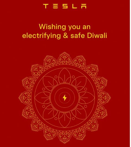 Musk reposted a Diwali greeting on the social media platform X, saying “Happy Diwali”, while tagging a post from his company's subsidiary Tesla India, saying, “Wishing you an electrifying and safe Diwali.”