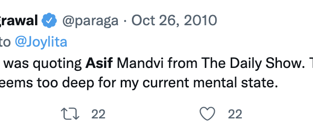 The tweet that is in the news was tweeted on October 26, 2010, read “If they are not gonna make a distinction between Muslims and extremists, then why should I distinguish between white people and racists?” However in the thread he can also be seen clarifying that he was only quoting the comedian Aasif Mandvi who had said something on these lines on the Daily Show. "I was quoting Asif Mandvi from The Daily Show," he tweeted less than 20 minutes after the now-controversial Oct. 26 tweet.