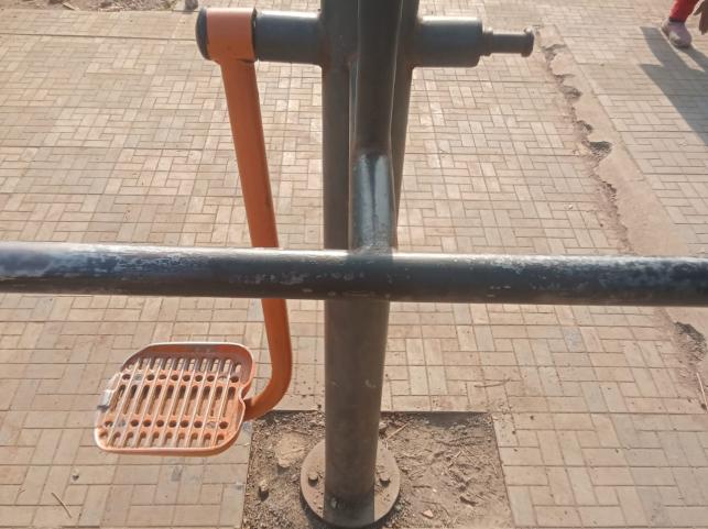 Residents say that several gym machines have rusted, with nuts, bolts, and shafts coming loose. In some cases, the pedals are completely missing, making it difficult to exercise properly. What's more concerning, they add, is that iron poles embedded in the ground have become shaky, potentially leading to serious accidents.