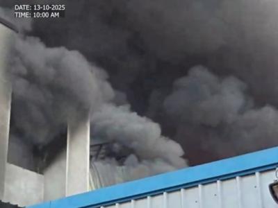 A huge fire broke out in a plastic manufacturing factory in the Asangaon area of Thane district in Maharashtra on Monday, October 13. The blaze erupted in the company named SKI Plastics situated in Shahapur tehsil. Multiple fire bridges along with water tankers are at the spot struggling to douse the raging blaze.