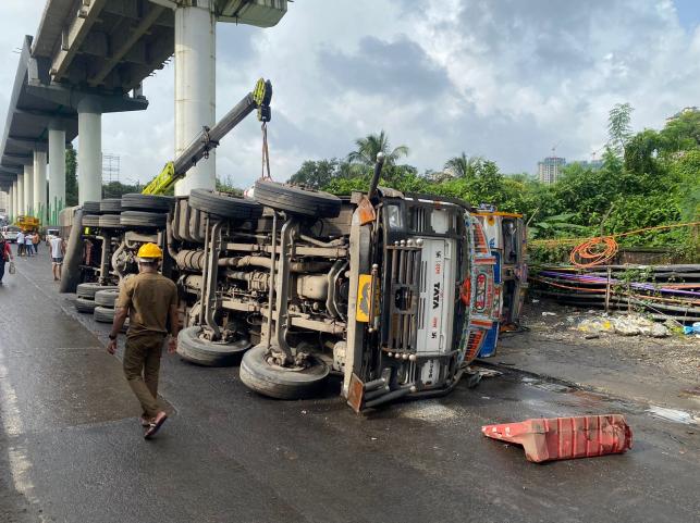Meanwhile, after about five hours of effort at the spot, the truck that had an accident near Patlipada Bridge has been moved to one side of the road, and traffic on Ghodbunder Road has been reopened.